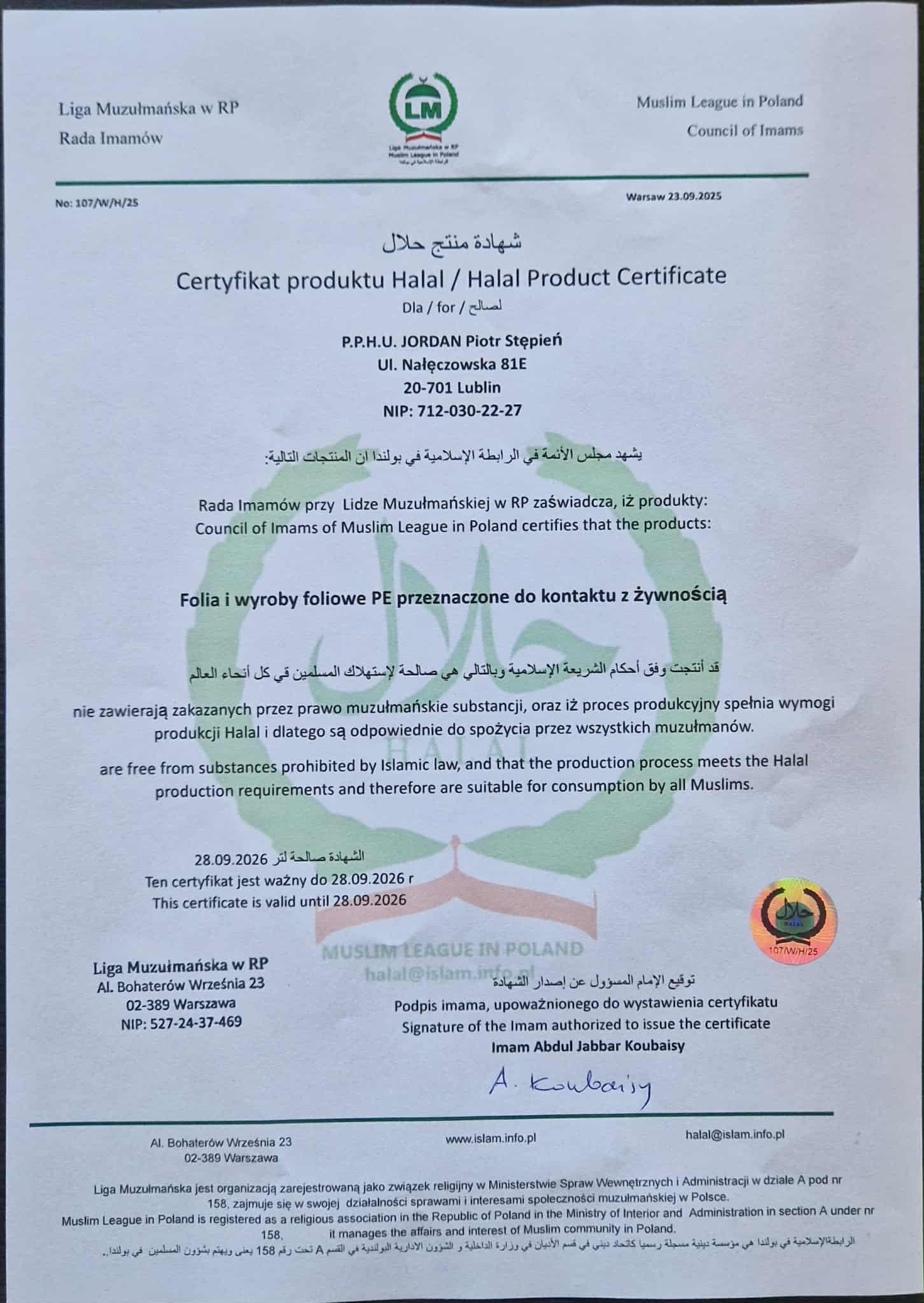 Firma Jordan współpracuje jedynie z renomowanymi dostawcami surowców, posiadamy wszystkie aktualne badania, atesty food contact oraz wymagane certyfikaty do kontaktu z żywnością, co jest gwarancją jakości naszych produktów oraz usług.